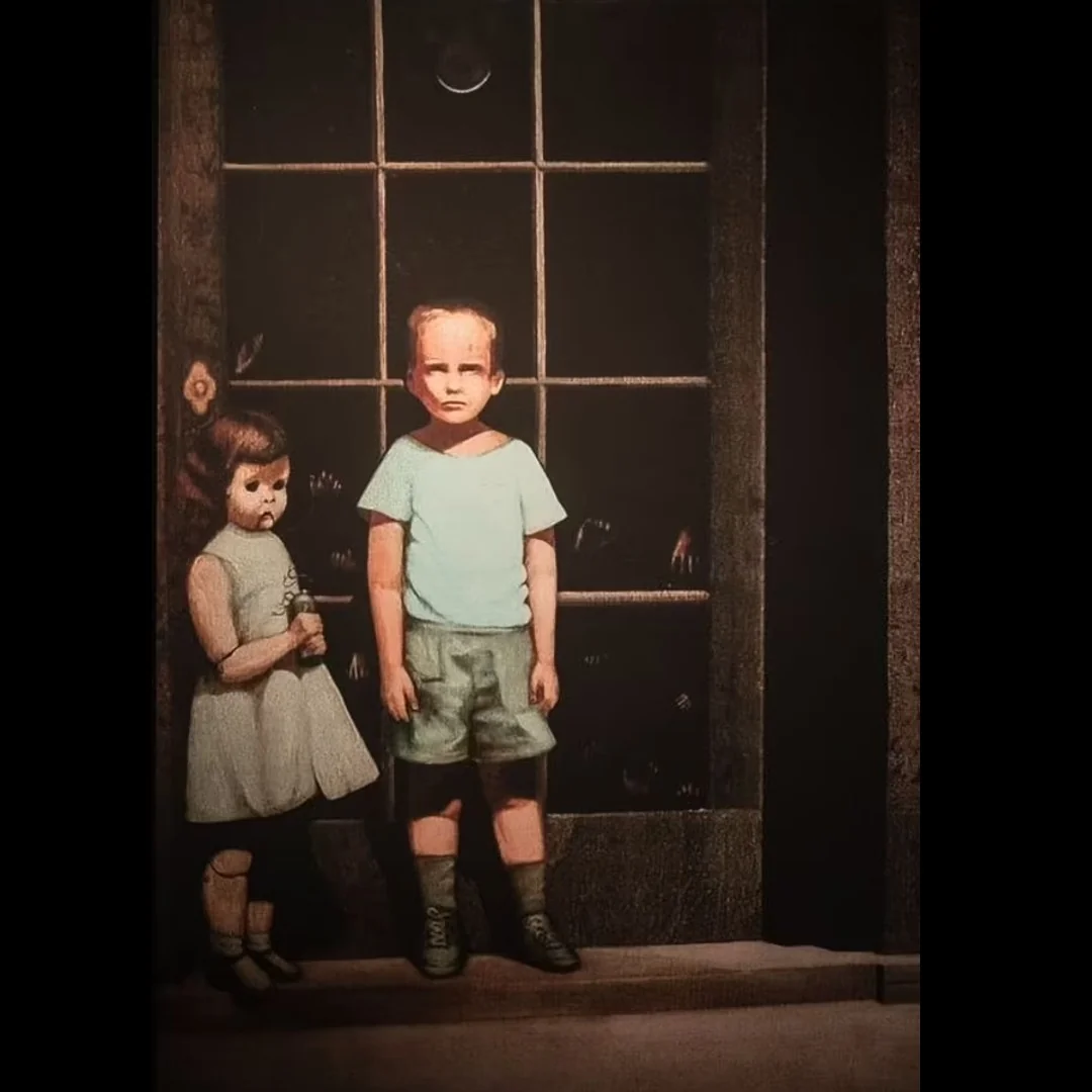 بيل ستونهام هو الفنان الذي رسم اللوحة وهي تحمل عنوان "أيادي تقاومه" Hands Resist Him وفي اللوحة نجد صبياً يجسد الفنان نفسه ودمية بشكل فتاة صغيرة بقربه ومن ورائهما نافذة زجاجية تظهر منها أيادي تحاول الإمساك وهي قابعة في الظلام، ذلك الظلام الذي يعبر عن الجانب الآخر من عالمنا،والزجاج هي الفاصل بين عالم الواقع والخيال، الدمية تمثل مرشدة الصبي لذلك العالم الآخر، كما في تصور الفنان. يمكنكم زيارة موقع ستوديوهات بيل ستونهام على الانترنت لتشاهدوا مزيداً من لوحاته، وتعتبر "أيادي تقاومه" ، اللوحة التي زادت من شهرة بيل من حيث لا يدري، رسم بيل تلك اللوحة في عام 1972 ولم يعلم كيف انتهت لوحته إلى مكان مهمل كما يقول إعلان البائع في موقع EBay لكنه يعلم صاحب صالة العرض التي تم عرض لوحته فيها وبيعت أول مرة، توفي كلاً من صاحب صالة العرض والناقد الفني في جريدة لوس أنجلوس تايمز بعد سنة واحدة من عرض تلك اللوحة!