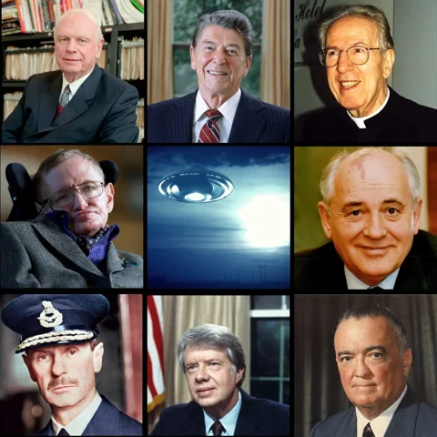 جميعهم يشتركون في قاسم مشترك: الإيمان أو الاعتراف بوجود ظاهرة الأجسام الطائرة المجهولة (UFOs)… فهل كانوا جميعاً مخدوعين؟ أم أن الحقيقة لا تزال تُخفي أكثر مما تُظهر؟