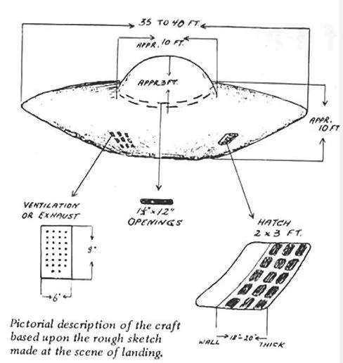 -عندما كان "ميكالاك" يتفحص الجزء الخارجي من المركبة فأنه مدَّ يده ليلمسه، ووصفه بأنه "زجاج مصقول لدرجة عالية من الصفاء دون وجود أي خدوش أو تجاعيد على السطح." عندما لامست يده المركبة، فأن قفازه ذاب من شدة الحرارة. حينئذ تحرك الجسم! أصبح بإمكانه الآن رؤية فتحة طولها حوالي 23 سم تقريباً وبعرض 15.50 سم تقريباً. الحرارة التي انبعثت من هذه الفتحة سببت حرق قميصه الخارجي والداخلي، فخلعهم بسرعة وهو يصرخ من الألم.