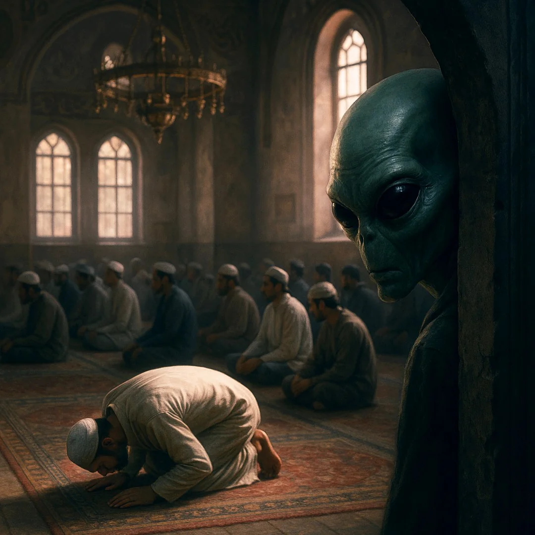 أتحدى الفقهاء في علوم الدين أن يأتوني بآية صريحة مباشرة غير خاضعة للتأويل تدحض إمكانية وجود مخلوقات أخرى في الكون ، فالحجة الرئيسة والوحيدة التي يرتكزون عليها مع إحترامي الكامل لعلومهم وإجتهاداتهم هي نفي وجود كائنات عاقلة أخرى في الكون فقط لأنها غير مذكورة ، فالله (حسب وجهة نظرهم) لم يذكر سوى الإنس ، الجن (الثقلان المكلفان ) وكذلك الملائكة، وغيرها من الحيوانات الأرضية كالعنكبوت والنمل والنحل والبهائم والخيول والطيور والحيوانات المفترسة وهي كلها حيوانات أرضية ليست من خارج الأرض".