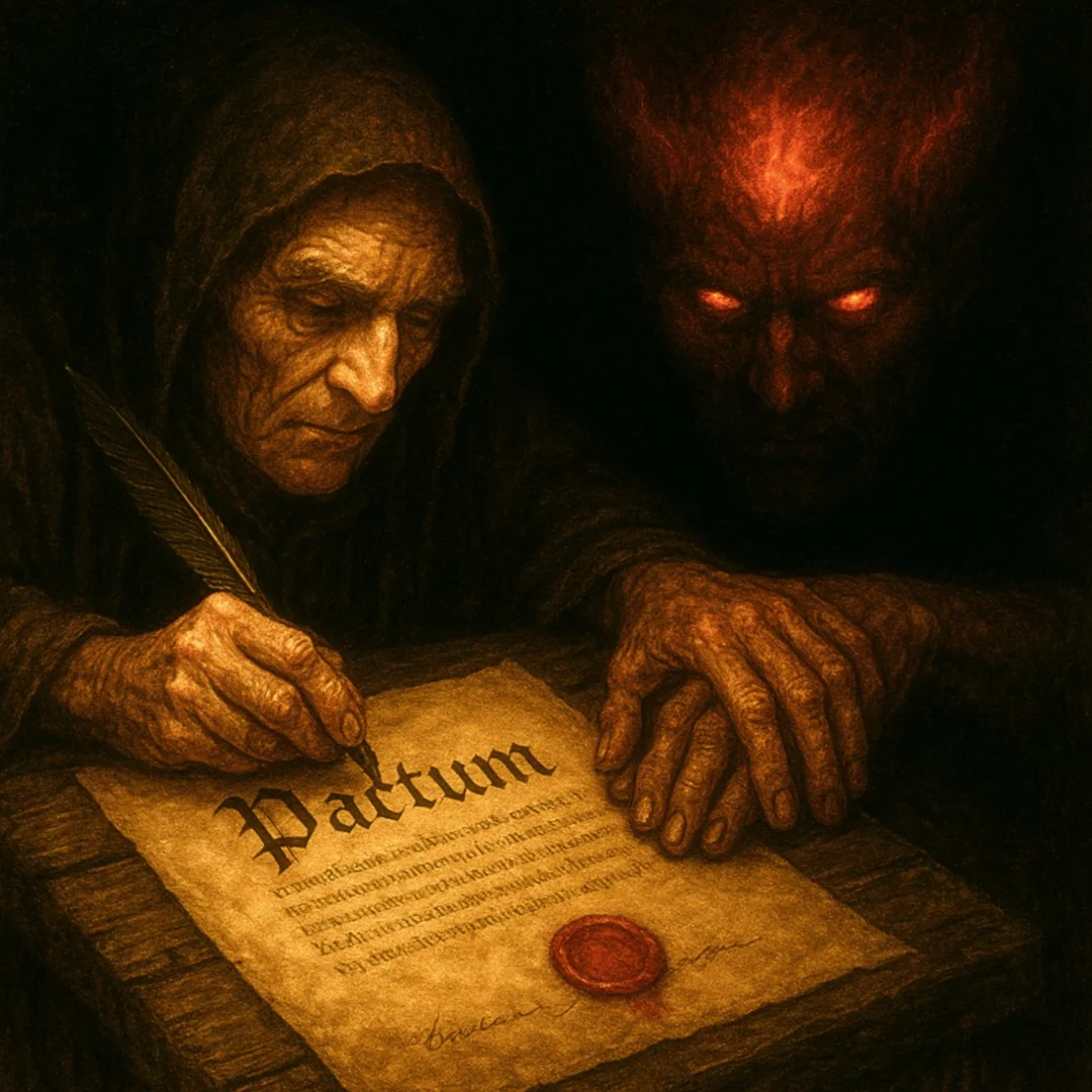 علماً أن العقد المبرم بين الساحر والشيطان هو عقد حقيقي وليس ضرب من الخيال وهو يعقد بين طرفين لإثبات بيع الساحر للشيطان روحه ونفسه ومتاعه نظيرما يمنحه الشيطان له من القوة والمقدرة لإتيان السحر، وقد ذكر المحامي الكبير (موريس جارسون) وهو أحد أقطاب المحاماة في فرنسا وهو مرجع موثوق به في عالم السحر والسحرة، أن كل الالتزامات الواردة في العقد من الطرف الأول وهو الساحر يقوم بها دون أي التزام نحو الطرف الثاني وهو الشيطان حتى لا يرجع الطرف الأول في حالة إخلال الشيطان بمساعدته وأضاف المحامي قائلاً: (إن لدي أحد هذه العقود).