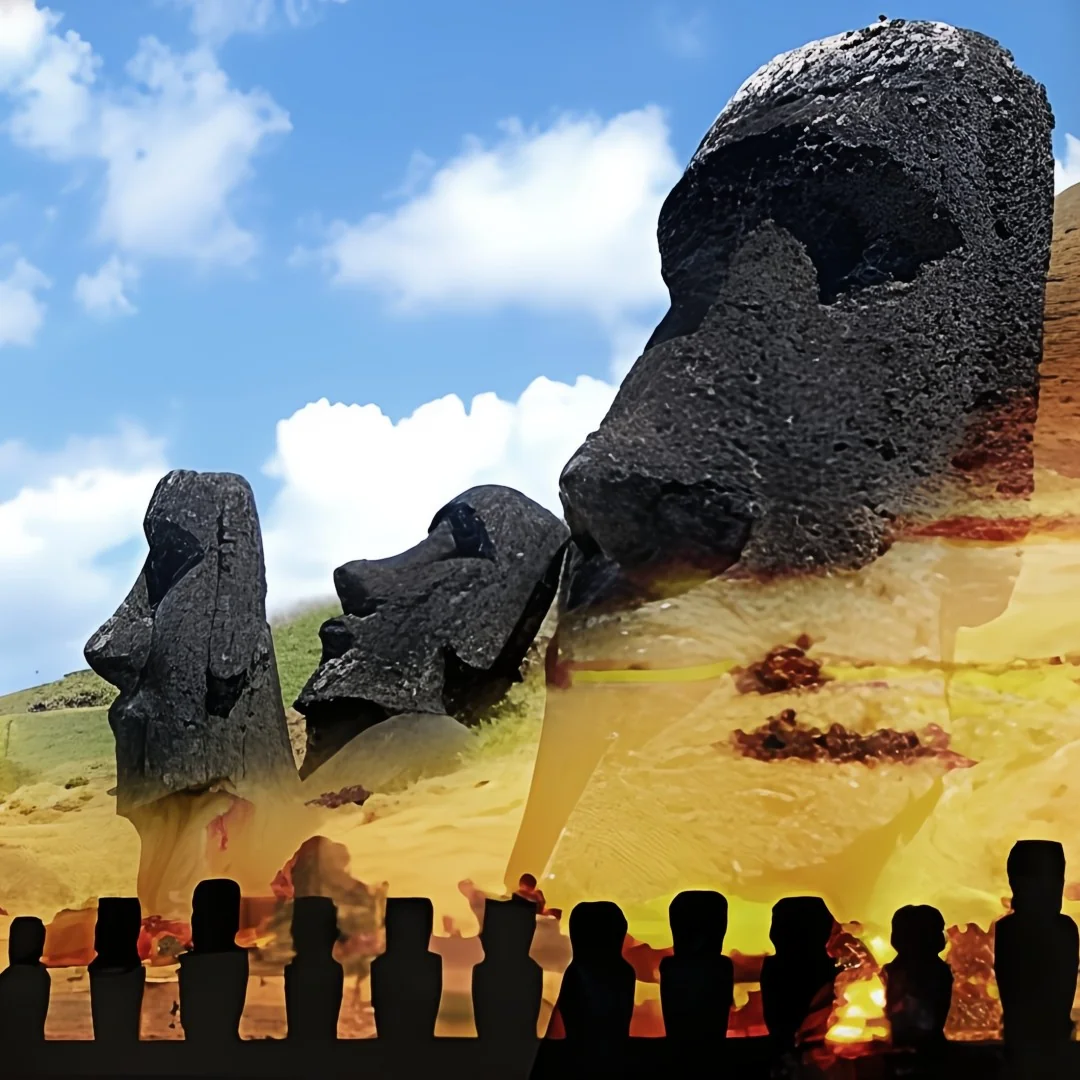 انا أتفق مع الاستاذ بلاك سيركل فى ان تلك التماثيل منحوتة لشىء مقدس......وخاصة أن ملامح جميع التماثيل متشابهة وقد تكون منحوتات تمثل آلهتهم وقد نحتوها على أطراف جزيرتهم لاعتقادهم انها ستحميهم