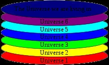 تصور هذه الأكوان على أنها وحدات منفصلة عن بعضها ، وأن لكل منها مكانه وزمانه ومادته وطاقته وقوانينه الفيزيائية الخاصة ، وهذا المفهوم يتحدى مصطلح الأكوان المتوازية لأنه لا يعترف بوجود أكوان متزامنة (لأن لكل منها زمنه الخاص ) أو بطريقة هندسية متوازية .