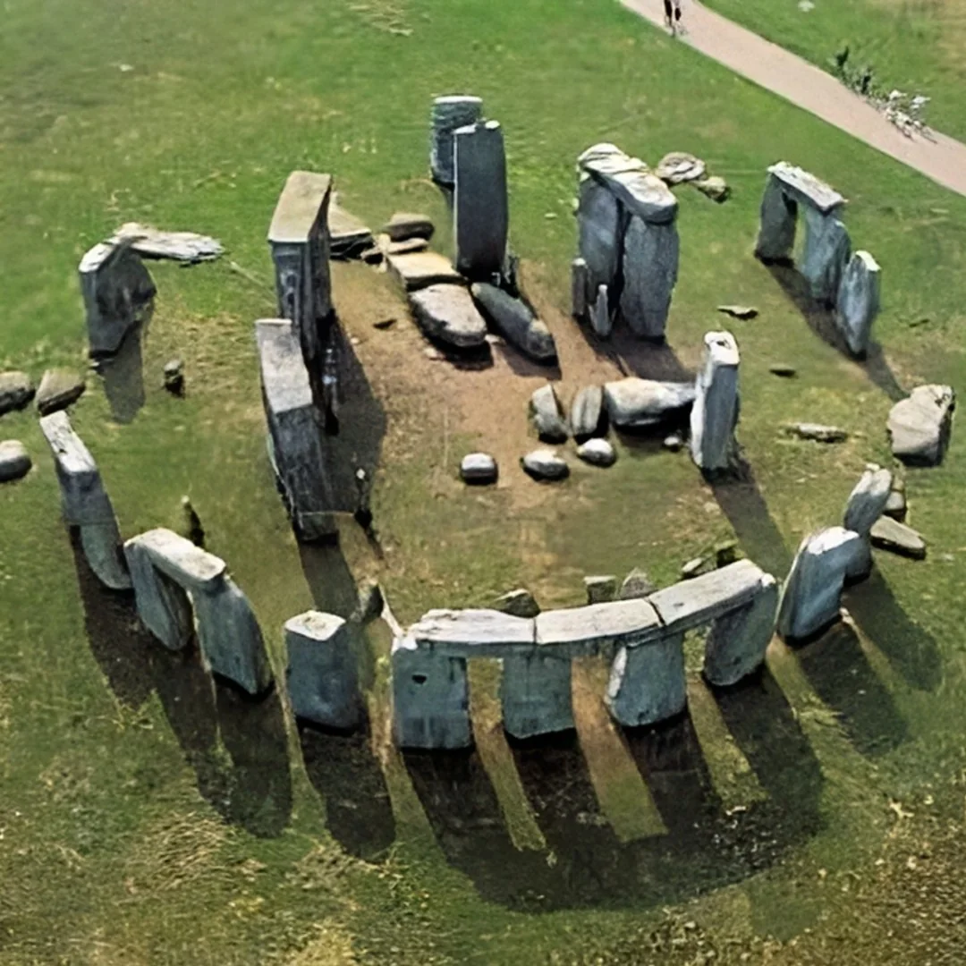 إذ لا يعتقد بعض الباحثين أن البريطانيين منذ آلاف السنين كانوا قادرين بمفردهم على نقل هذه الحجارة التي يزن الواحد منها 5 أطنان من جنوب ويلز وعلى بعد 250 ميل ! ، بل يعتقدون أن كائنات خارجية فضائية بنت هذا الصرح الشاق مع استخدام التكنولوجيا المتقدمة.