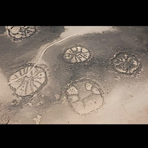 وقد أطلق علماء الآثار عليها اسم " العجلات " وتتخذ هذه التراكيب الحجرية تشكيلة واسعة من التصاميم ، إلا أن التصميم الأكثر شيوعاً هو دائرة تشع من الداخل ويعتقد الباحثون أنها تعود إلى العصور القديمة ويقدرون عمرها بـ 2000 سنة على أقل تقدير.