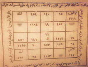 ويزعم أن آية الكرسي لها من المحبة والقبول والجاه عند الأكابر : "إذا أردت أن يكون لك ذلك فارسم هذا الوفق في رق غزال واكتبه بماء الورد والزعفران وتكتب حول الوفق آية الكرسي وعندما تحمله تبخر بعود هندي وجاوي وعود الصليب وهذه صورته