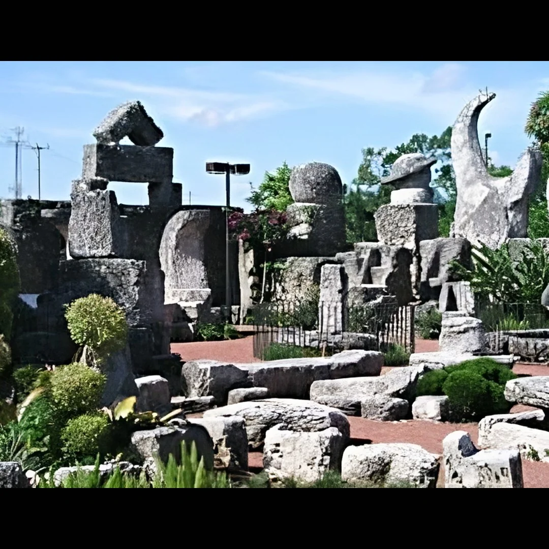 قام (إدوارد ليداسكالنين) بجلب وقطع ورص ورفع أحجار تزن في مجموعها أكثر من 1100 طن وقام بترتيب الأثاث الحجري على الأرضية ووضع أسرة حجرية وطاولة طعام وكراسي وأشكال لأهلة وكواكب ونجوم، وصنع كذلك كرسي هزاز من الحجر قيل أن وزنه 30 طن وعلى الرغم من ذلك يستطيع أي شخص تحريكه بيده وإيقافه بيده !، وقام بعمل نوافير وبوابة متحركة قيل أن وزنها ليصل لـ 30 طن أيضاً تفتح وتغلق على محور في المنتصف بدقة وإتقان مدهش مثل بوابات الفنادق في العصر الحديث .