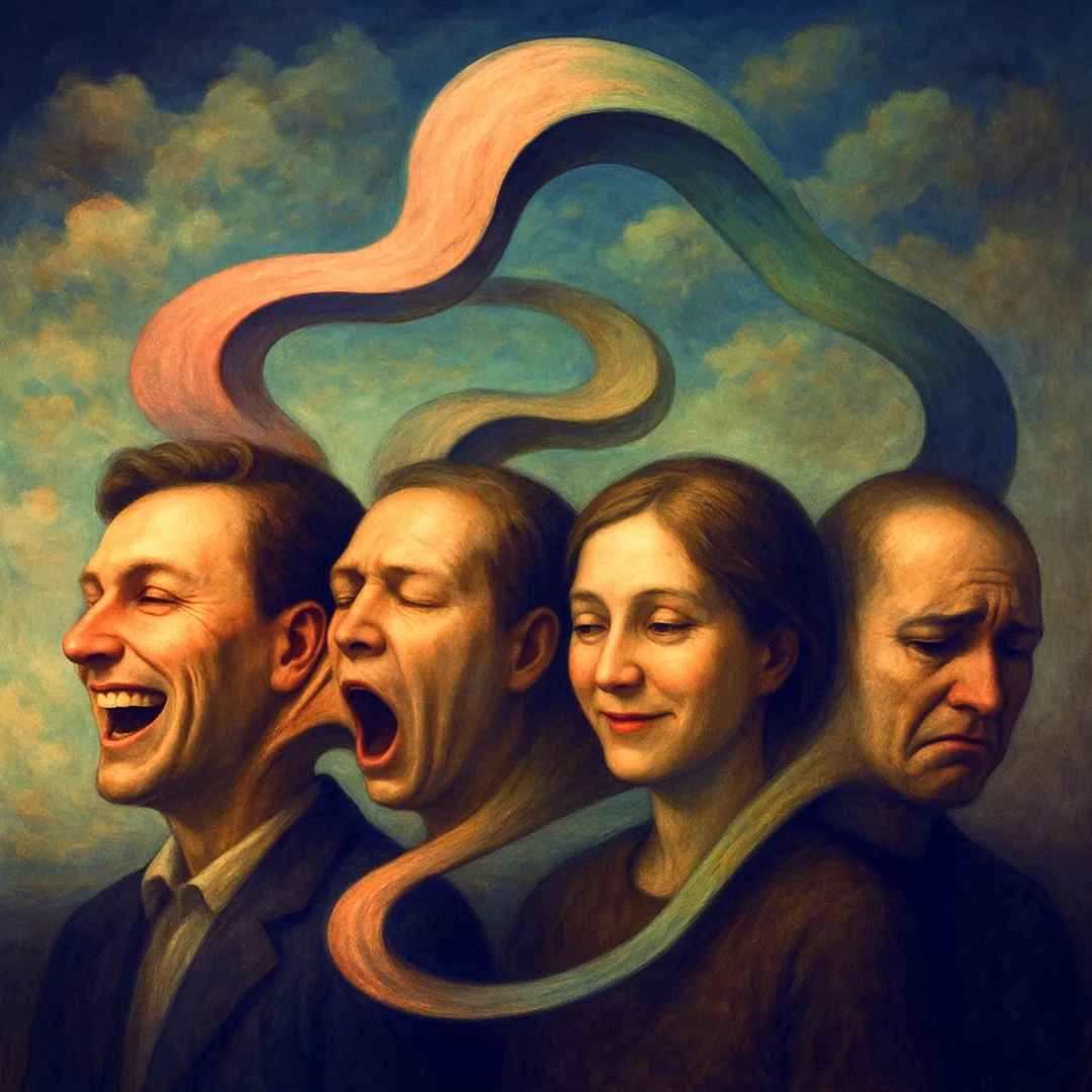 وعند إصابتك بوابل من الفرح والضحك بلا مبرر، أو الشعور بالحب الغامر والسعادة التي تطغى على جوانب من نفسك، حينئذ ستغزوك عدوى الفرح والحب والتفاؤل؛ هل ستكتشف المصدر؟ وهل لتبادل الابتسامات والتثاؤب والحركات في آن واحد  مؤشر علمي ونفسي ثابت ؟