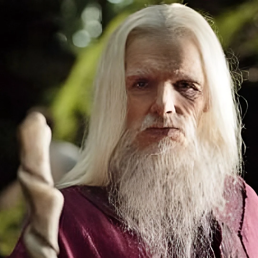 فى أفلام هارى بوتر دائما يقولون بحق لحية مرلين فهل هذا مرلين الذين يقصدونة ؟ وما السر وراء لحيتة ؟
