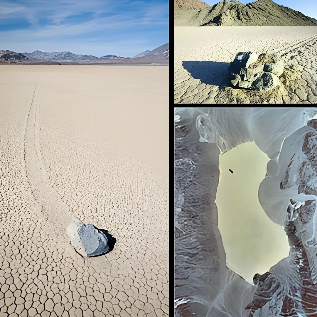 شرح حركة هذه الصخور صح إذا كان من مقدور الهواء تحريكها في وقت قصير نسبيا (حد أقصى ساعة أعتقد). كما نعلم أن الهواء يغير إتجاهه باستمرار ويجب دراسة دلى ثبات إتجاه الهواء في تلك المنطقة. لذا يمكننا أن نكتشف فعلا إذا الهواء هو المحرك. ولكن نلاحظ أن الحجارة تتحرك كل واحدة باتجاه (حسب النص أعلاه) وهذا غير منطقي. ويجب أيضا كشف إنحدار الأرض. هل صودف حجارة تذهب بعكس الجازبية ولو قليلا؟ أعتقد شرح الهواء غير كاف ما لم تراقب المنطقة متى يكون فيها الظرف المناسب للجليد والمياه والهواء.