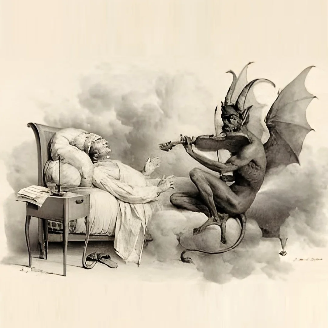 هل تلقى (تارتيني) معزوفته فعلاً من الشيطان أو من قرينه ؟ أم أنه تعمد خلق هذه القصة ليتألق نجمه بين كبار الموسيقيين في أوروبا التي شهدت في تلك الفترة العصرالذهبي لعلوم الموسيقى وصدحت فيها أعظم الألحان وأعذبها وما نطلق عليه اليوم "الموسيقى الكلاسيكية" ؟ وهل هناك صلة بين وحي الإبداع الفني والعلمي والشيطان الذي في داخلنا ؟فيما مضى كان كبار شعراء العرب يربطون بين هذا الإبداع في أشعارهم مع ما كان يعرف بـ "شيطان الشعر" ، وعلينا أن لا ننس بأن هناك مخترعين وعلماء في التاريخ أخذوا أفكار إبداعهم من وحي الأحلام أيضاً.