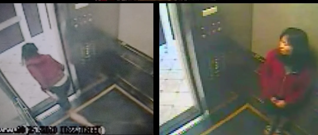 الأغرب من ذلك، أن أبواب المصعد تظل مفتوحة لفترة طويلة بشكل غير طبيعي وكأن احد يضغطها من الخارج حتى بعد مغادرتها، لتغلق أخيرا بعد لحظات من مغادرتها للمصعد واختفائها عن الكاميرا.