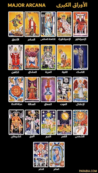 هذه الأوراق تمثل مراحل تطور الروح والوعي، وغالبًا ما يُنظر إليها على أنها تمثل ما هو "مكتوب" في قدر الإنسان ، تحولات داخلية، أزمات وجودية، لقاءات مصيرية، ويُقال إنها تعبّر عن مراحل "رحلة الأحمق" The Fool’s Journey، أي رحلة النفس البشرية نحو النضج.