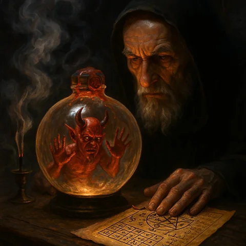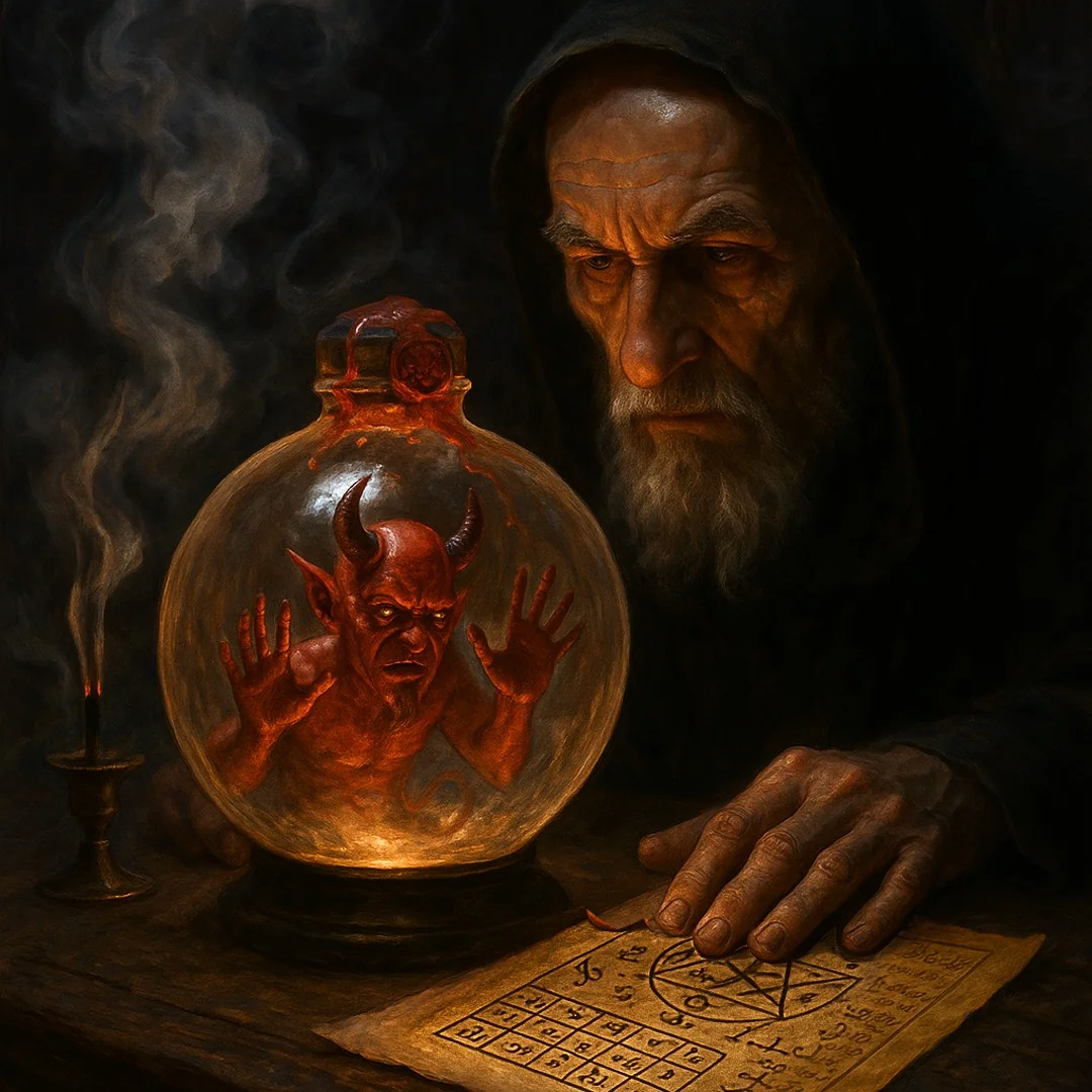 حبس أو سجن الجني بالختم الروحي ليس مجرّد خرافة أو مشهد سينمائي… بل هو مزيج مركّب من: أسطورة خيالية (علاء الدين والمصباح) ، معتقد ديني (سليمان وتسخير الجن) ، طقس سحري موثق (كتب الطلاسم والروحانيات) ، خرافة شعبية (الذئب وحجر الجني) وكذلك تجارب فردية واقعية أو متخيلة.