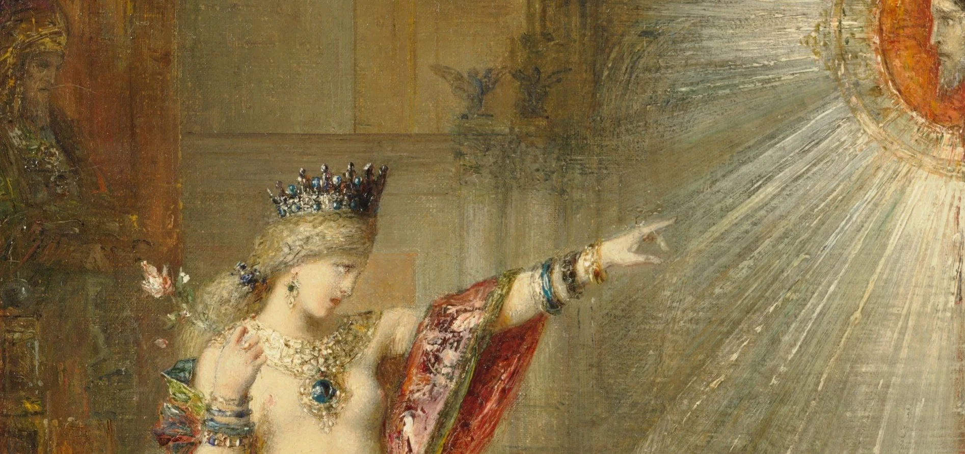 في الرؤية الزخرفية لمورو، تظهر سالومي كأنها في حالة غريبة بين النشوة والخوف، تواجه الرؤية الماورائية لرأس يوحنا المضيء، في تصوير يذهب بعيداً عن مجرد حدث تاريخي ليصبح رمزاً للصراع بين الرغبة والقداسة.