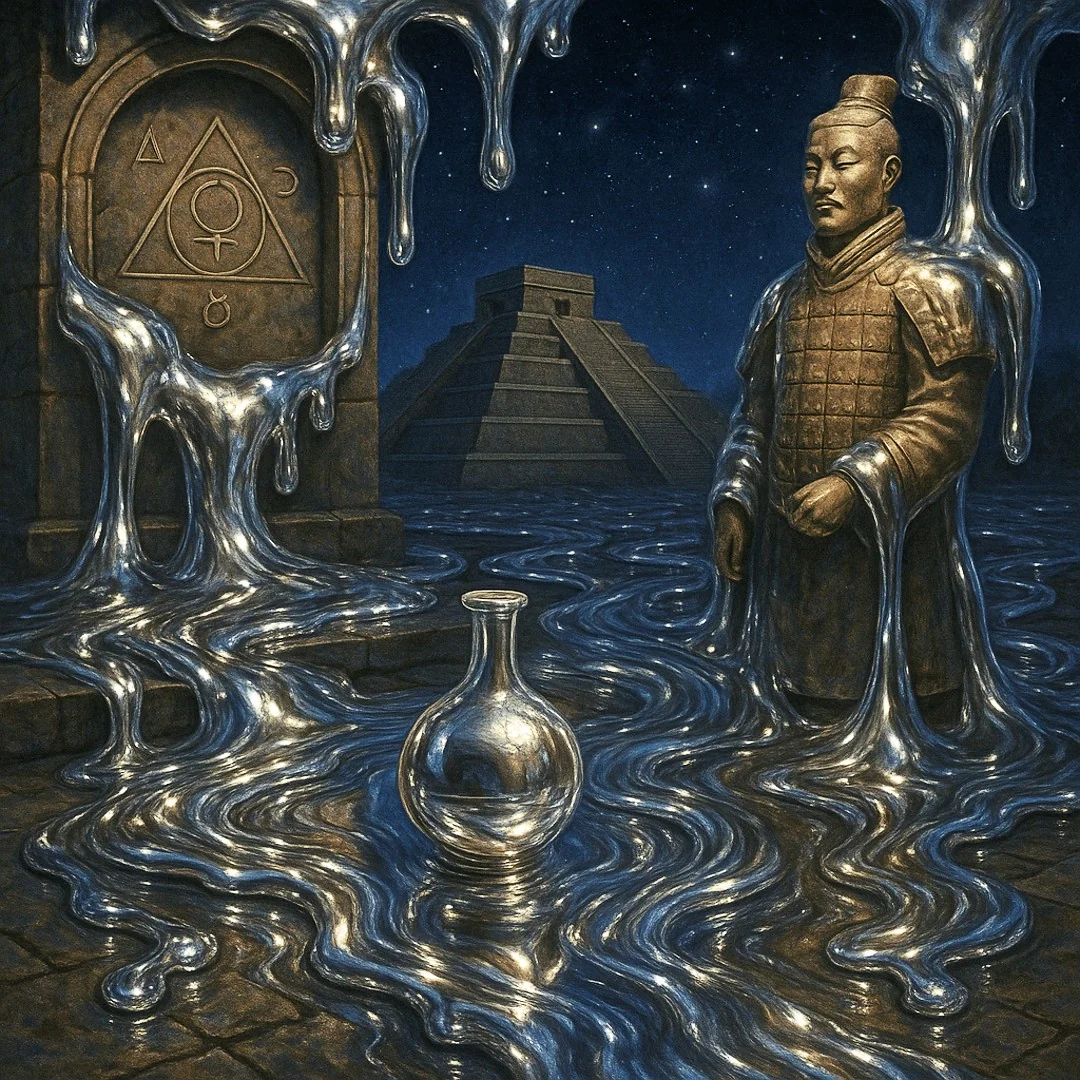 انعكاسه الفضي الساحر وحركته الانسيابية منحاه هالة من القداسة في نظر القدماء، فاستخدم في طقوس السحر والخيمياء، ورُبط بالخلود والكنوز وحتى العالم السفلي. في هذا المقال نستعرض الدور الماورائي والعلمي لهذا المعدن، مع أحدث الاكتشافات الأثرية التي تؤكد حضوره في الحضارات القديمة.