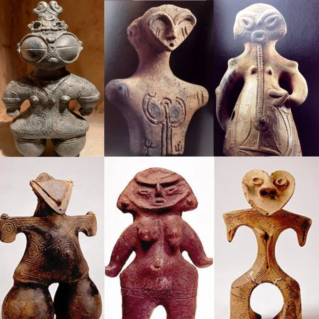 منحوتات طينية ، عثر على عدد ضخم منها حتى 18000 قطعة ، تعود لعصر جومون (10000 – 300 قبل الميلاد)، وهي ذات عيون كبيرة وأجسام غريبة ، ولا يُعلم الغرض منها قد تكون أدوات طقسية لعبادة آلهة الخصوبة. البعض يرى فيها تمثيل لكائنات فضائية زارت الأرض ، تُعرض اليوم في متاحف اليابان، وما زال العلماء في حيرة من أمرها.