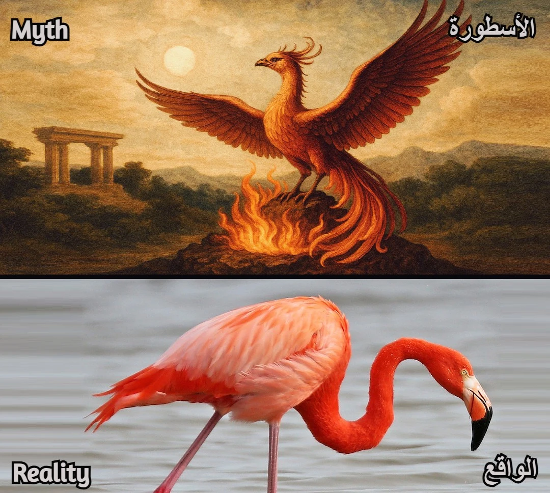 يُشير خبراء الطيور إلى أن اللون القرمزي الزاهي لريش الفلامنغو وبيئته القاسية وسلوكه في التكاثر قد ساهمت في نشوء فكرة الطائر الناري ، ومن الجدير بالذكر أن الاسم العلمي لعائلة الفلامنغو هو فونيكوبتريدا Phoenicopteridae وهي جذر كلمة "Phoenix" اللاتينية أي "الفنيق"، في إشارة إلى هذه الصلة الأسطورية.