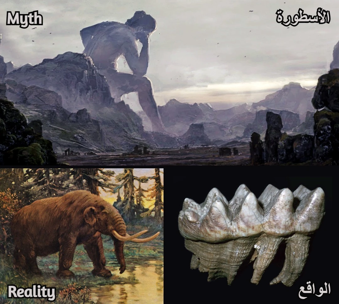 كثيرة هي الثقافات التي تضم أساطير عن عمالقة بشريين عاشوا قديماً. إحدى التفسيرات العلمية لهذه القصص هي اكتشاف الشعوب القديمة لعظام ضخمة تعود لفصائل منقرضة كالماموث أو الماستودون (فيل قديم). إذ كان الإغريق القدماء يعتقدون أن أبطالهم الأسطوريين كانوا عمالقة يبلغون ثلاثة أضعاف حجم البشر العاديين، وعندما عثروا على عظام فخذ أو كتف عملاقة - والتي نعرف الآن أنها تخص فيلة ما قبل التاريخ - ظنوها بالخطأ "عظام بشرية" بحجم هائل، في الواقع، أي شخص يرى هيكلاً عظمياً لفيل يمكنه ملاحظة التشابه العام مع عظام البشر ولكن بحجم يفوقها مرات عديدة ، ويؤكد الباحث مايور أنه “ لا شك أن الأحافير أثّرت في تصور الإغريق والرومان للعمالقة والمخلوقات الخرافية”، إذ حاول القدماء تفسير بقايا المخلوقات المنقرضة عبر المزج بين المعرفة العقلانية والخيال.