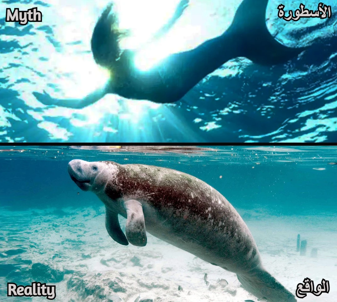 أساطير حوريات البحر منتشرة حول العالم وتتحدث عن كائنات بنصف جسد إنسان ونصف سمكة. إحدى التفسيرات الشهيرة هي أن البحارة ربما أخطأوا في رؤية خراف البحر (مثل عجول البحر/خروف البحر – Manatees أو الأطوم – Dugong) وظنوها حوريات جميلة من بعيد.
