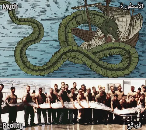 في البحار المفتوحة لا تقل حية البحر غموضًا. فالسجلات البحرية منذ القرن السادس عشر تزخر بروايات عن أفاعٍ بحرية عملاقة تلتف حول السفن، وقد ساهمت هذه القصص في ترسيخ صورة الوحش البحري في المخيلة الأوروبية. لكن التفسير العلمي الأكثر قبولًا اليوم يربط عددًا كبيرًا من تلك المشاهدات بسمكة المجداف، وهي سمكة عظمية نادرة، شريطية الشكل، قد يتجاوز طولها ثمانية أمتار. تظهر هذه السمكة أحيانًا قرب السطح عندما تكون مريضة أو محتضرة، وتتحرك بحركة متموّجة تجعلها، في نظر بحّار مرهق أو مذعور، أقرب إلى ثعبان أسطوري هائل. تقارير حديثة من متاحف ومؤسسات علمية تؤكد أن “شكل” سمكة المجداف وحده كافٍ لولادة الأسطورة، دون الحاجة إلى افتراض وجود كائن خارق.