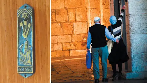 على يمين مدخل كثير من البيوت اليهودية تُثبت علبة صغيرة مائلة قليلاً، يلمسها الداخلون والخارجون بحركة سريعة تكاد تكون عفوية. تلك هي ميمزوزا Mezuzah ، تفصيل معماري بسيط ظاهرياً، لكنه يحمل دلالة دينية عميقة تمتد من النص التوراتي إلى المخيلة الشعبية عن الحماية.