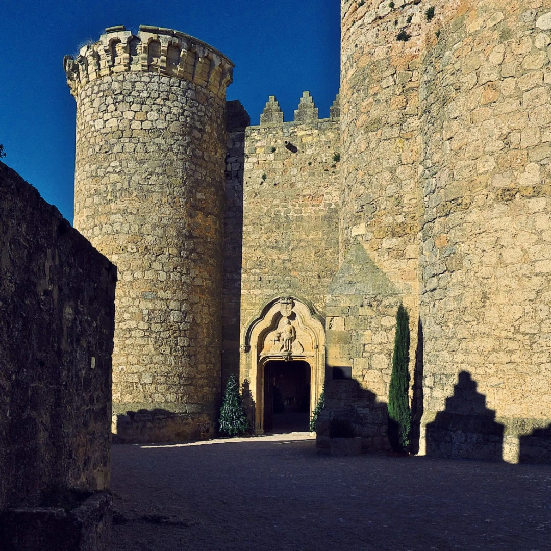 شُيدت القلعة عام 1456 بأمر من دون خوان باتشيكو، ماركيز فيينا القوي، لتكون في آنٍ واحد مقراً فاخراً وحصناً دفاعياً. وقد جمعت بين العمارة القوطية الأنيقة وزخارف المدجنين الإسلامية، حيث تظهر الأسقف الخشبية المزخرفة والفناء الداخلي المثلث كدليل على هذا الامتزاج الثقافي.
