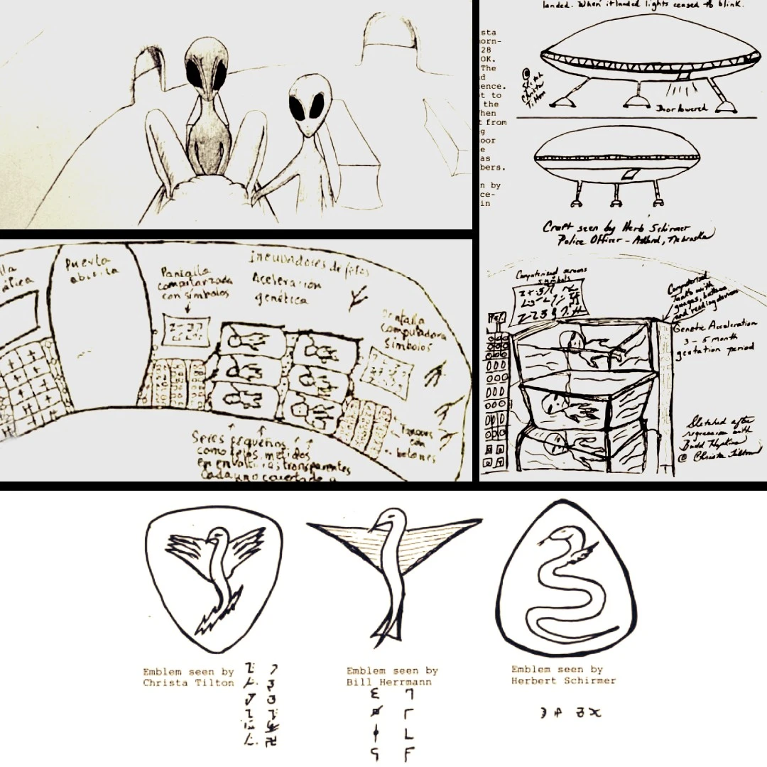 ضمن التفاصيل التي أوردتها كريستا تيلتون، هناك عنصر لافت يتكرر في عدد من حالات الاختطاف الأخرى: رؤية رمز أو شعار غير مفهوم. في حالتها، تحدثت عن شكل أقرب إلى ثعبان مجنح، محفور أو معروض في بيئة الكائنات التي تفاعلت معها.