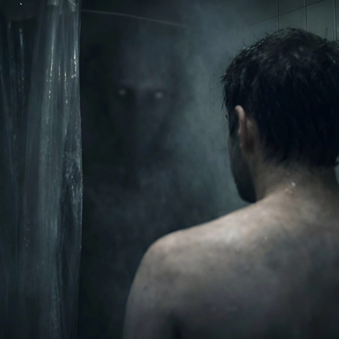 تراجع خلف الستارة. لكن ظله… كان أكبر من الحمّام ، أكبر بكثير.
