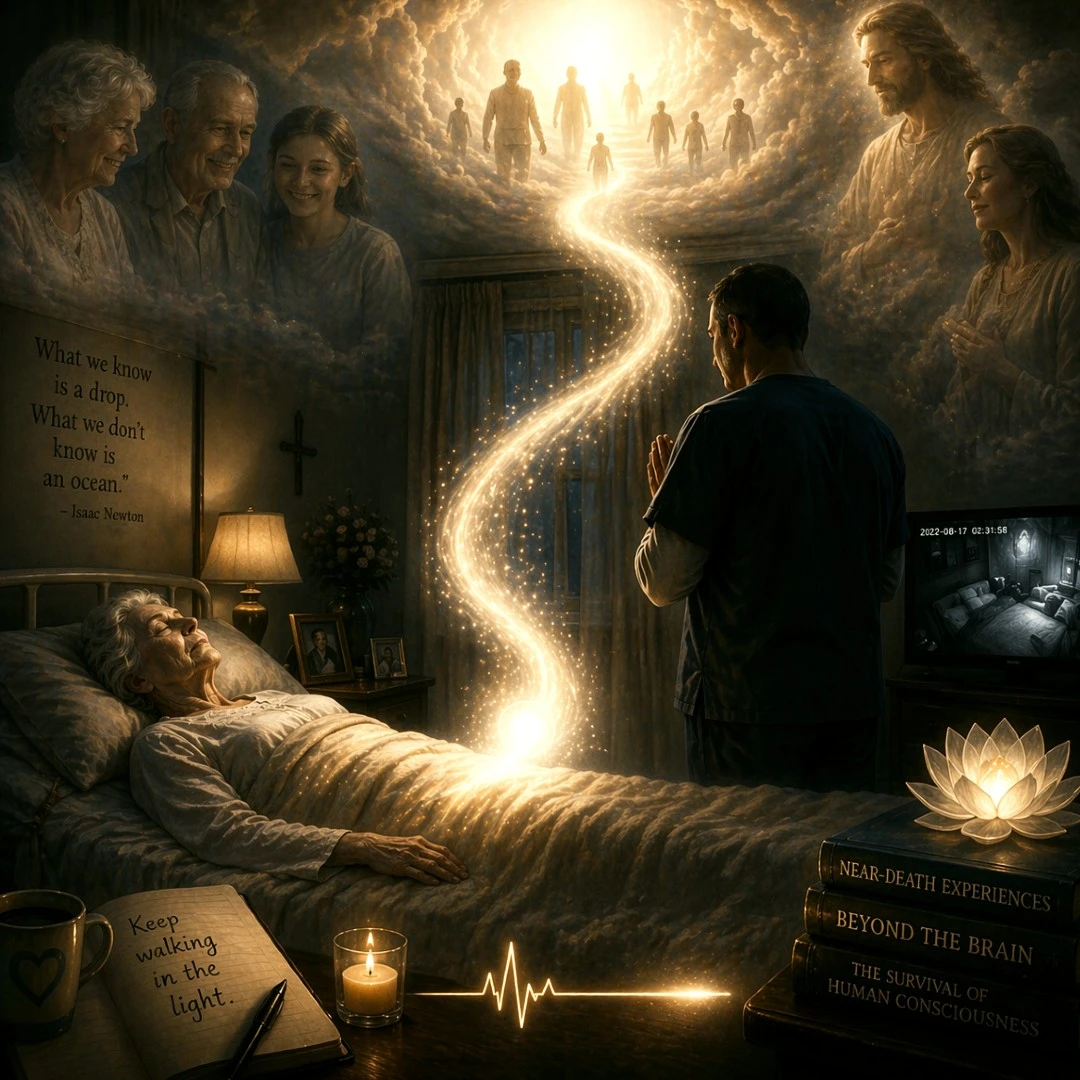 في أيامها الأخيرة، كانت تتحدث يومياً عن "زيارات" تتلقاها من أقارب وأصدقاء متوفين ، أحياناً كانت تقول إن الغرفة مليئة بـ "كائنات نورانية" وتطلب إخراجها لأن المكان "مزدحم" ، وفي أوقات أخرى كانت تضحك وتتحدث مع من تبيّن لاحقاً أنهم والدتها وجدها وأصدقاء مقربون رحلوا قبلها ، المثير أن مقدمي الرعاية لا يعتبرون هذه التجارب مجرد هلوسات… بل يتعاملون معها كجزء طبيعي من مرحلة الاحتضار.